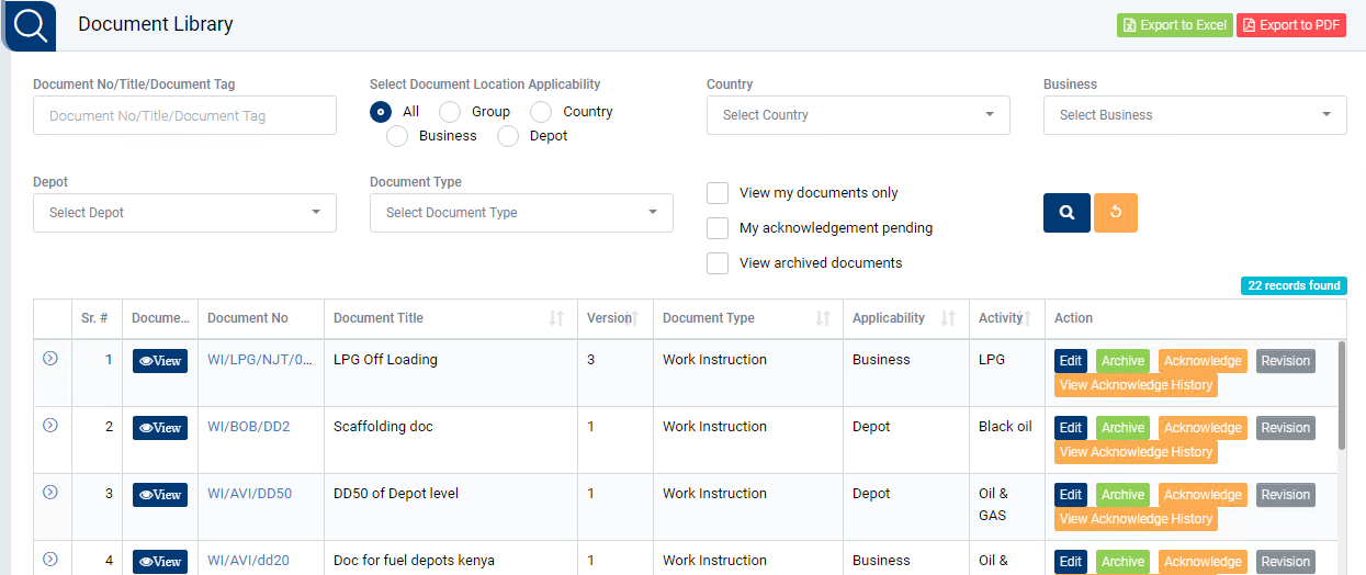 - User can Archive the document from this page which will get displayed in My acknowledgement pending section.
